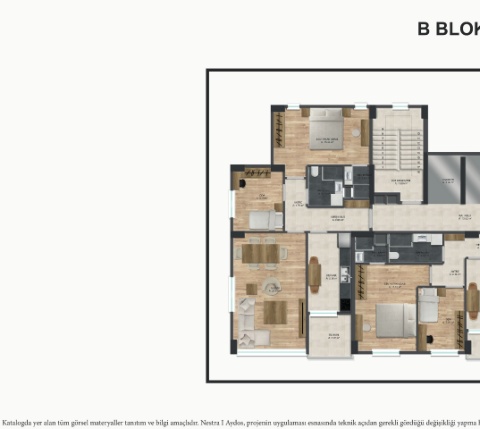 B BLOK KAT PLANI Katalogda yer alan tüm görsel materyaller tanıtım ve bilgi amaçlıdır. Nestra I Aydos, projenin uygulaması esnasında teknik açıdan gerekli gördüğü değişikliği yapma hakkını saklı tutar.